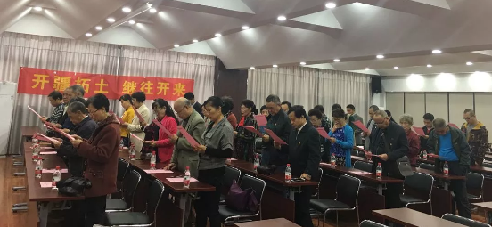 由梅花苑社區(qū)黨總支書記張青華領(lǐng)誓,全體黨員面向黨旗肅立,莊嚴宣誓。